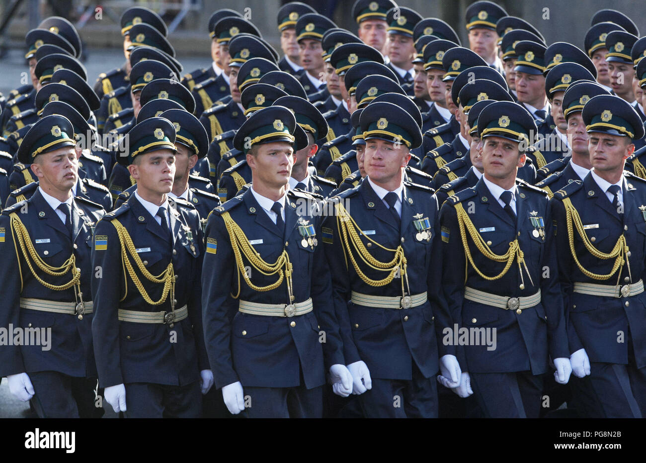 Kiev Ukraine 24th Aug 2018 Ukrainian Army Soldiers Take Part At The Military Parade To Celebrate Independence Day On Independence Square In Kiev Ukraine Mark Their 27th Anniversary Of Independence On August